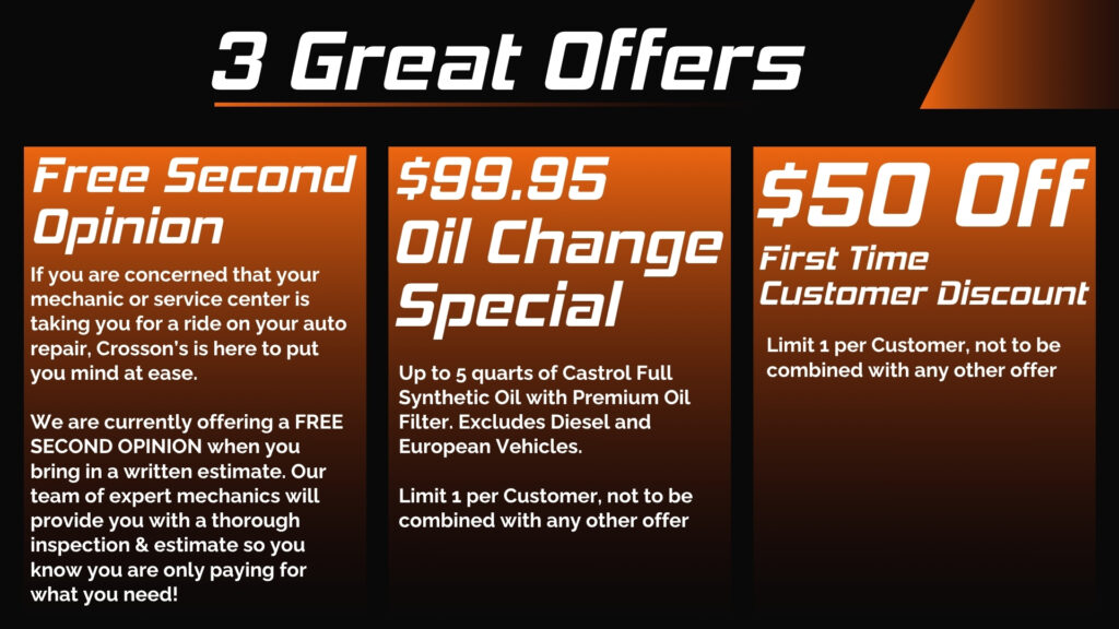 You don’t want to leave maintenance and repair work to just anybody. You want the best technicians available to do the job right the first time. At Crosson’s Auto Repair, we understand the intricacies of Domestic & Japanese vehicles like Acura, KIA, Lexus, Honda, Toyota and Hyundai.
